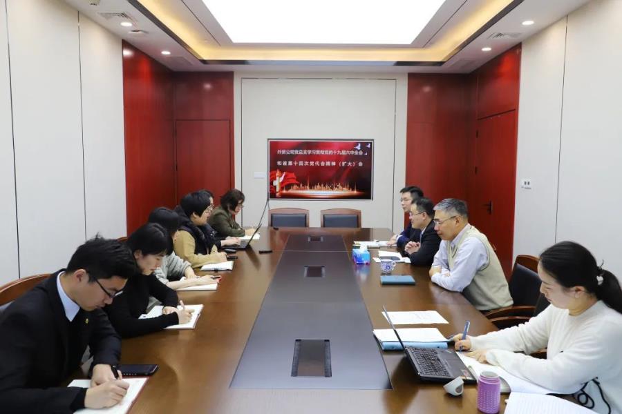 11月29日上午,外贸公司召开党总支委员会(扩大)专题会议,学习传达党的十九届六中全会和省第十四次党代会精神,全文学习六中全会公报和《中共中央关于党的百年奋斗重大成就和历史经验的决议》精神,党总支副书记张强主持会议。