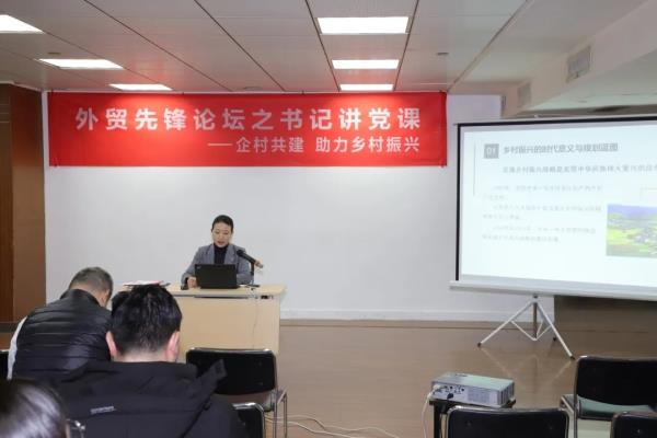 12月30日下午,外贸公司开展2020年度先锋论坛之书记讲党课系列活动最后一场,本次党课主题为“企村共建 助力乡村振兴”,由公司党总支委员、第三支部书记王卓讲授。