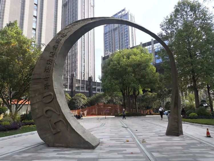 在距公司不远的长江路五二〇运动纪念广场入口处,有一座总体呈圆拱形的主题雕塑,上书“520学生运动纪念广场”。其作者为南大著名雕塑艺术家吴为山教授,设计灵感来自5、2、0这3个数字的弧形,寓意时光穿越之门、历史审视之门,雕塑上遍体的“伤痕”则展现了斗争的悲壮。走进穿越之门,就能看到广场的人物群雕,反映了当年中央大学学生走上街头反饥饿、反迫害、反内战的场景,地面灯带采用线条的形式,将历史事件以时间线为逻辑顺序,进行叙述,表现了当年波澜壮阔的历史。