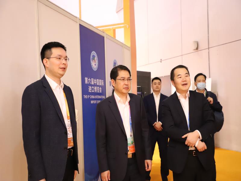 11月6日下午,苏豪控股集团党委委员、副总裁李明、晋永甫、蒋成效到江苏外贸公司展台看望参展工作人员。