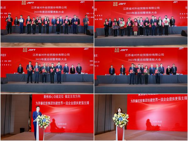 1月26日,外贸公司召开2023年度总结暨先进表彰大会。苏豪控股集团副总裁、党委委员李明,集团委派外贸公司董监事出席会议。公司领导班子成员、本部全体职工和各子企业、驻外办事处全体员工参加会议。外贸公司常务副总经理郑彬主持会议。