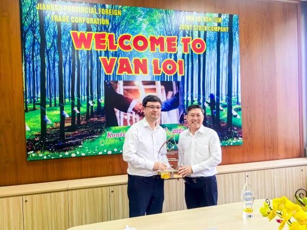 3月5日,应越南橡胶龙头企业昆嵩万利公司邀请,考察团前往越南嘉莱省考察橡胶业务。在昆嵩万利公司,盛亚坤向该公司董事长武重诞介绍了外贸公司以及外贸公司越南代表处的基本情况,双方就开拓越南橡胶市场、扩大合作进行了深入交流。交流会上武重诞还向外贸公司颁发了昆嵩万利公司年度最重要客户奖。