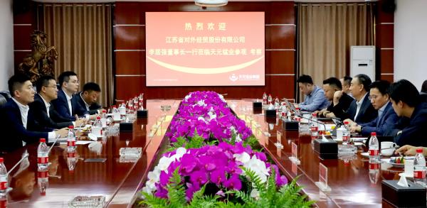 贾天将向李居强一行介绍了天元锰业的发展历史、生产经营和战略定位等情况,他表示,天元锰业是世界最大的电解锰生产企业,是宁夏最大的民营实体企业。自创立之初坚持聚焦实业,做精主业,建设了锰产业、能源化工、国际贸易、物流运输、海外矿山等事业板块。希望天元锰业和外贸公司发挥各自优势,紧密配合,双向赋能,共同打造民企和国企的协同发展之路。