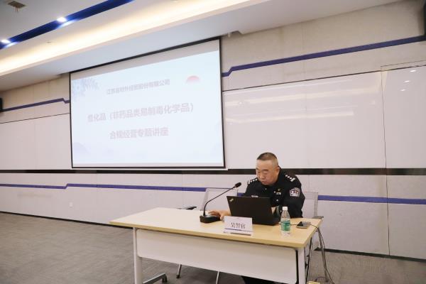 培训会上,南京市鼓楼区公安禁毒大队吴健警官对国家部委近期颁布的危险化学品、易制毒化学品相关规范进行了解读,对非药品类易制毒化学品基础知识进行了详细讲解,介绍了非药品类易制毒化学品监管信息化工作要求。吴健警官紧密结合管理办法和基础知识,对公司如何进一步完善危化品经营全过程合规管理提出了建议,案例生动形象,讲解稳慎扎实。