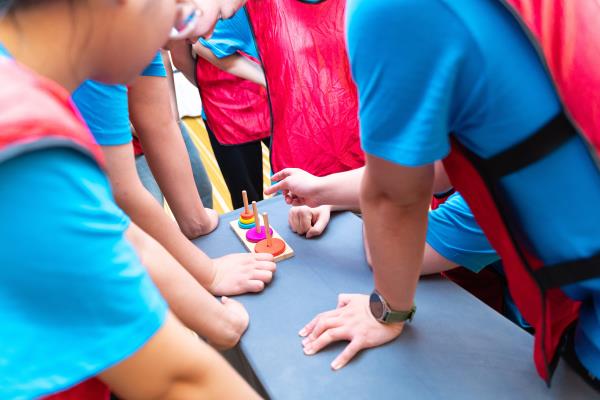 三根立柱,几颗彩色圆盘,便组成了汉诺塔,初看简单,实则蕴含着深刻的逻辑性与策略性。当益智游戏碰撞上团队竞技协作,传统元素得到了新的诠释,生发出绚烂的思维火花。大家在相互启发中共同寻找最优解,在行动复盘中体验团队合作的力量。