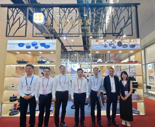 苏豪控股集团党委委员、副总裁李明一行莅临对外经贸公司展位指导。在展位前,李明听取了公司锅具业务经营发展和出口情况的汇报,详细了解了参展锅具的功能、特性和新产品研发进程以及锅具行业的最新信息和市场动态。李明指出,创新是企业发展的不竭动力,是企业核心竞争力的源头活水,对外经贸公司要抢抓发展机遇,加大产品研发投入,持续推进锅具产品创新,大力发展新质生产力。要紧跟行业前沿趋势和市场需求动态,灵活调整产品结构,满足国内国际客户的多样化需求,进一步提升品牌影响力和市场竞争力。同时,要积极探索锅具业务差异化发展新路径,奋力开创锅具业务发展新局面。