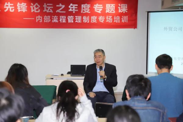 11月5日上午,外贸先锋论坛之年度专题课——内部流程管理制度专场培训开班。外贸公司党总支书记、董事长毕武作开班讲话。